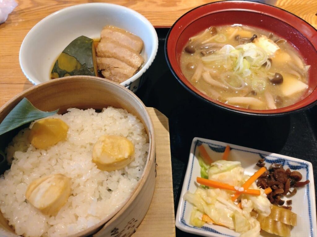 お庭がきれいで待った 甲斐あり 値段も良心的 汁具が多くお腹一杯。栗は甘露煮